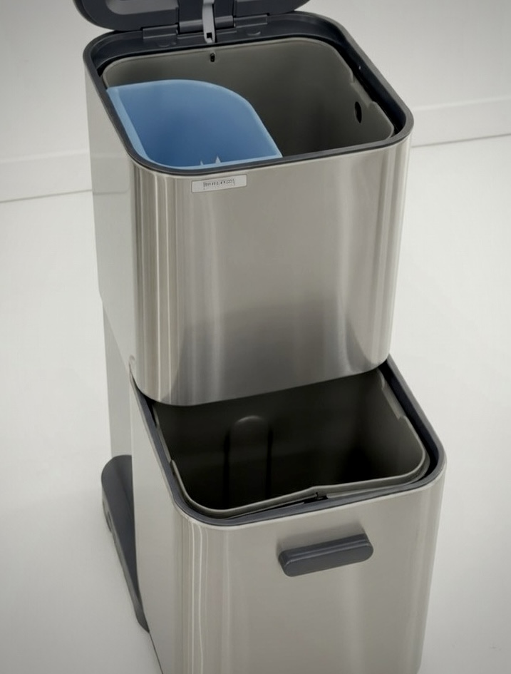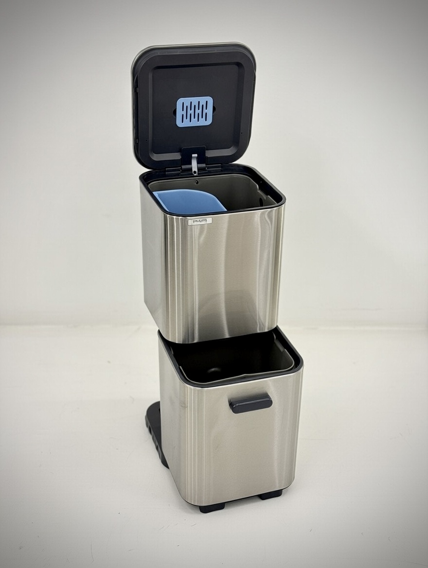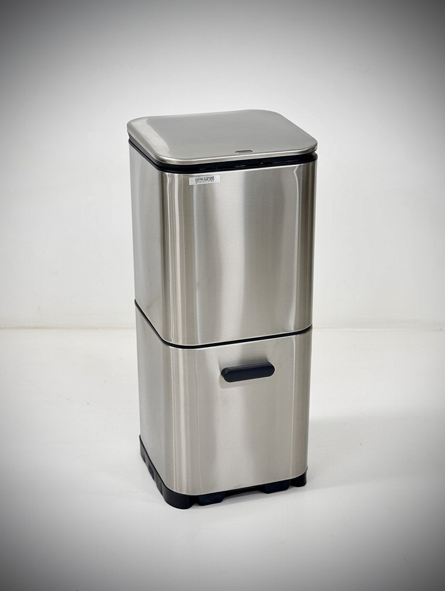 سطل زباله سنسوردار استیل ضدزنگ ۹+۹ لیتری با قابلیت سه گانه تفکیک زباله و مجهز به سطل داخلی و سیستم ضد عفونی UV برای مخزن بالایی